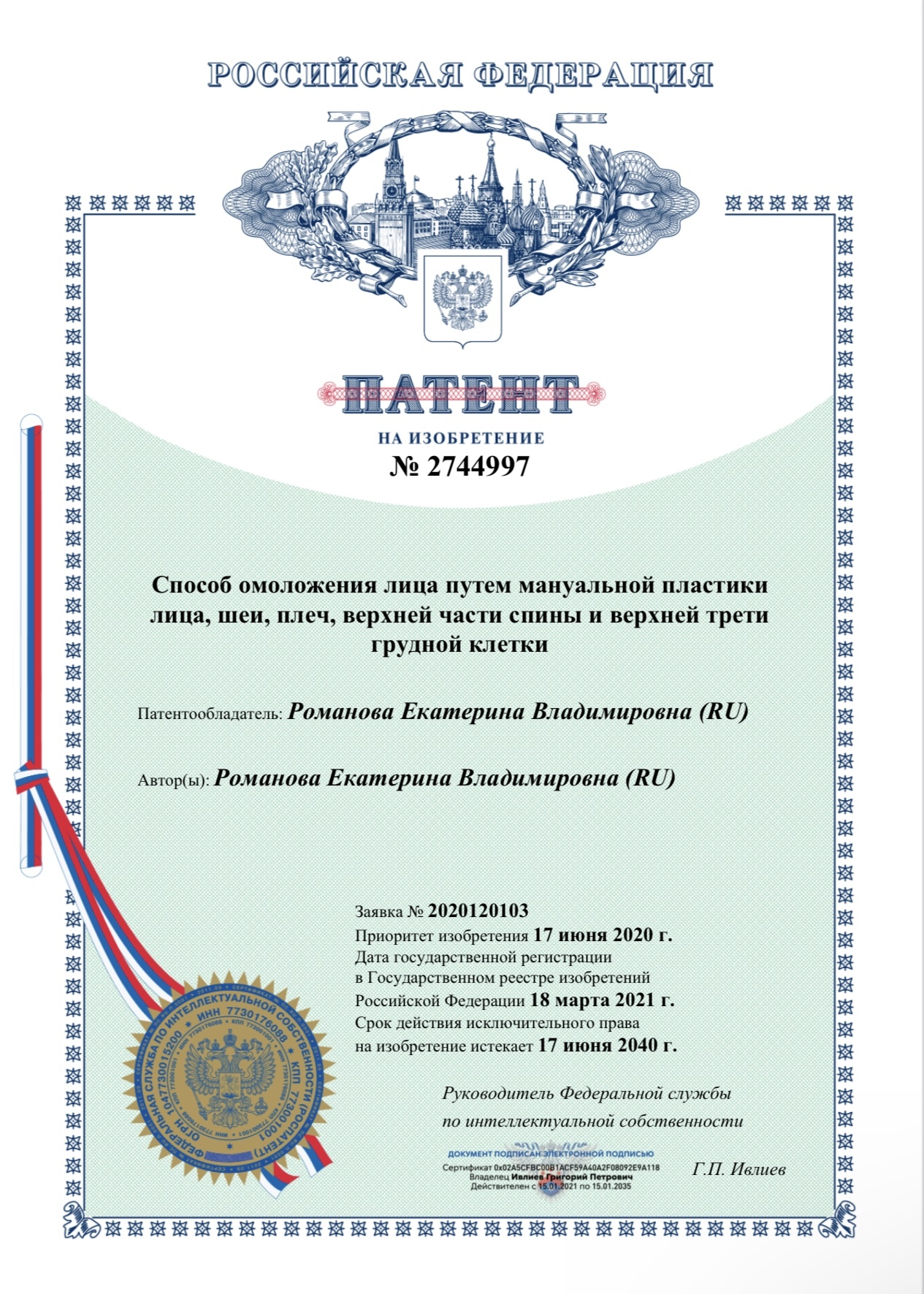Методика Безоперационной Пластики лица запатентована в 2020 году.